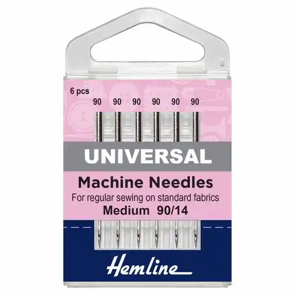 Agujas japonesas para máquina con puntas suavemente redondeadas #90/14. Las agujas universales pueden ser usadas en la mayoría de las telas. Exclusivo packaging resistente que no solo permite una mejor organización de las agujas, sino también un mejor acceso a ellas gracias a que su pared posterior es abatible. 5 unidades.