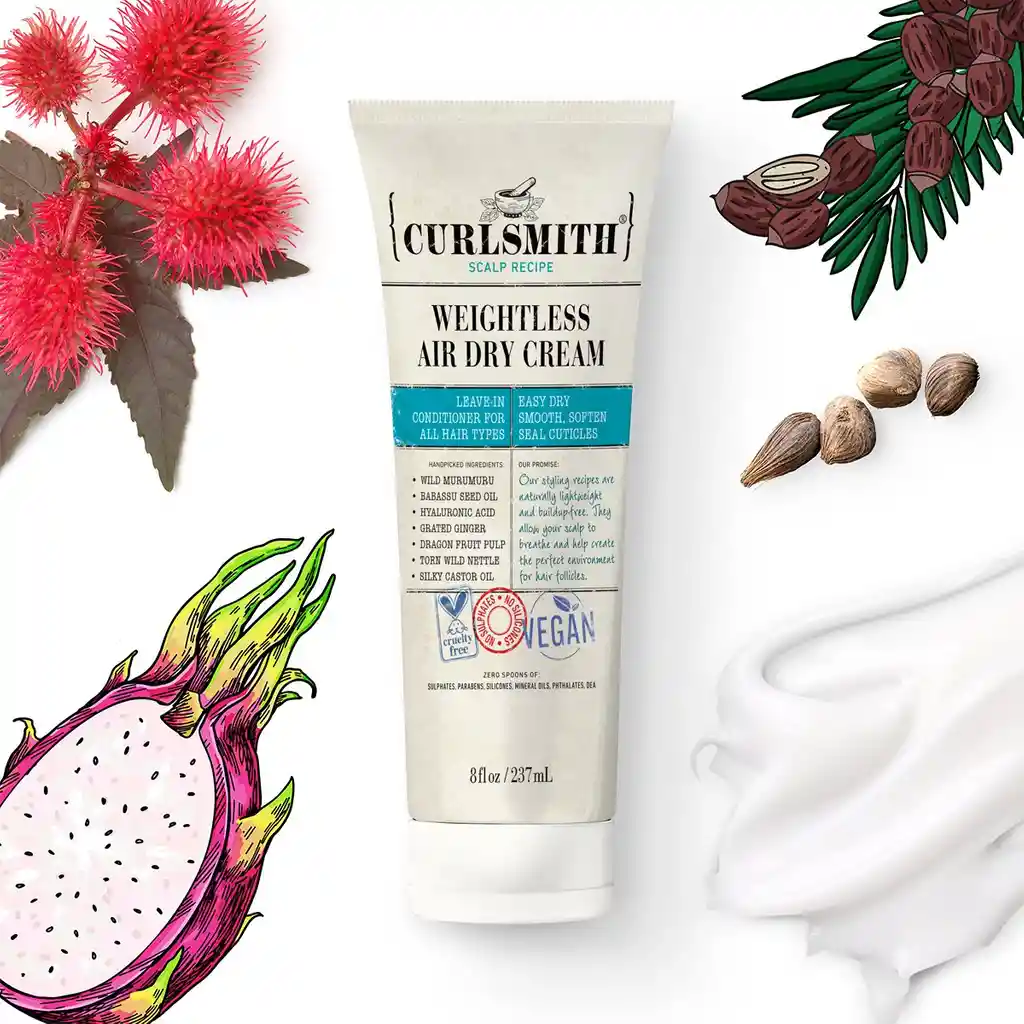 Acondicionador ligero sin enjuague que realza la textura de los rizos e hidrata el cabello sin apelmazarlo. Especial para desenredar. La crema Air Dry es el Leave-In más versátil de las líneas. Su textura ligera y sedosa lo hace adecuado para el cabello más fino, pero también está enriquecido con ingredientes humectantes como aceite de ricino, babasú, jojoba y manteca de murumuru que brindan suficiente nutrición para los tipos de cabello más grueso. Esta crema ha sido diseñada para absorberse en el cabello sin dejar residuos, con el fin de minimizar la acumulación de producto en el cuero cabelludo. Perfecto para secar al aire libre, también se puede utilizar para difuminar los rizos y lograr un estilo ligero y voluminoso.