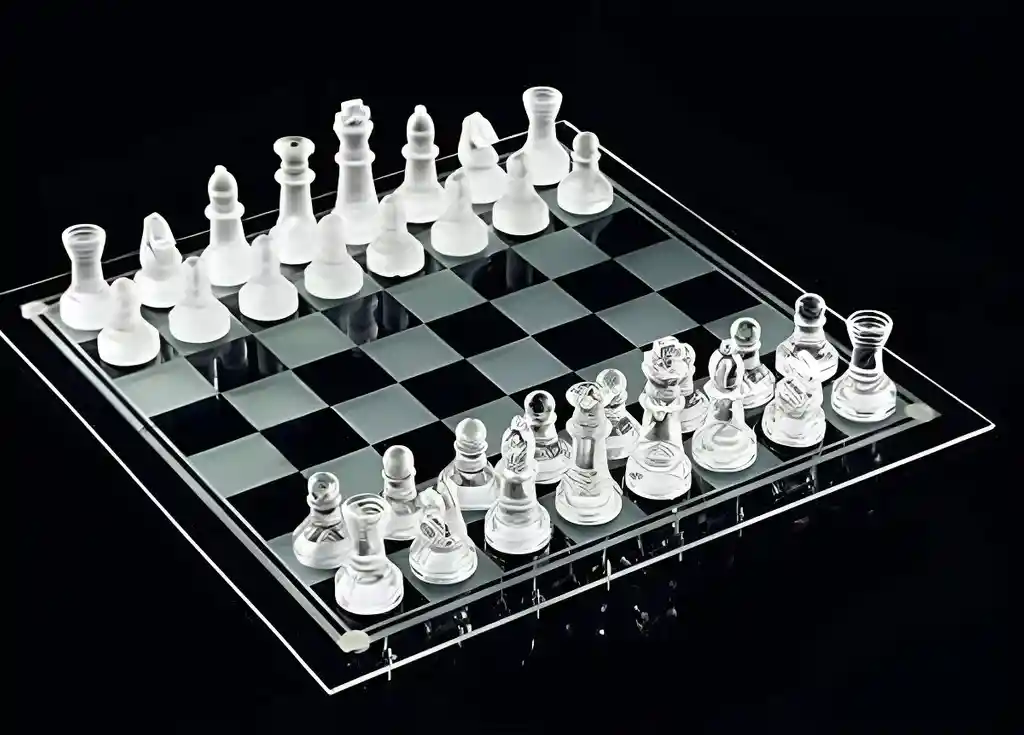 Ajedrez Cristal Calidad 26 X 26 Cristal Juego Mesa Lujo