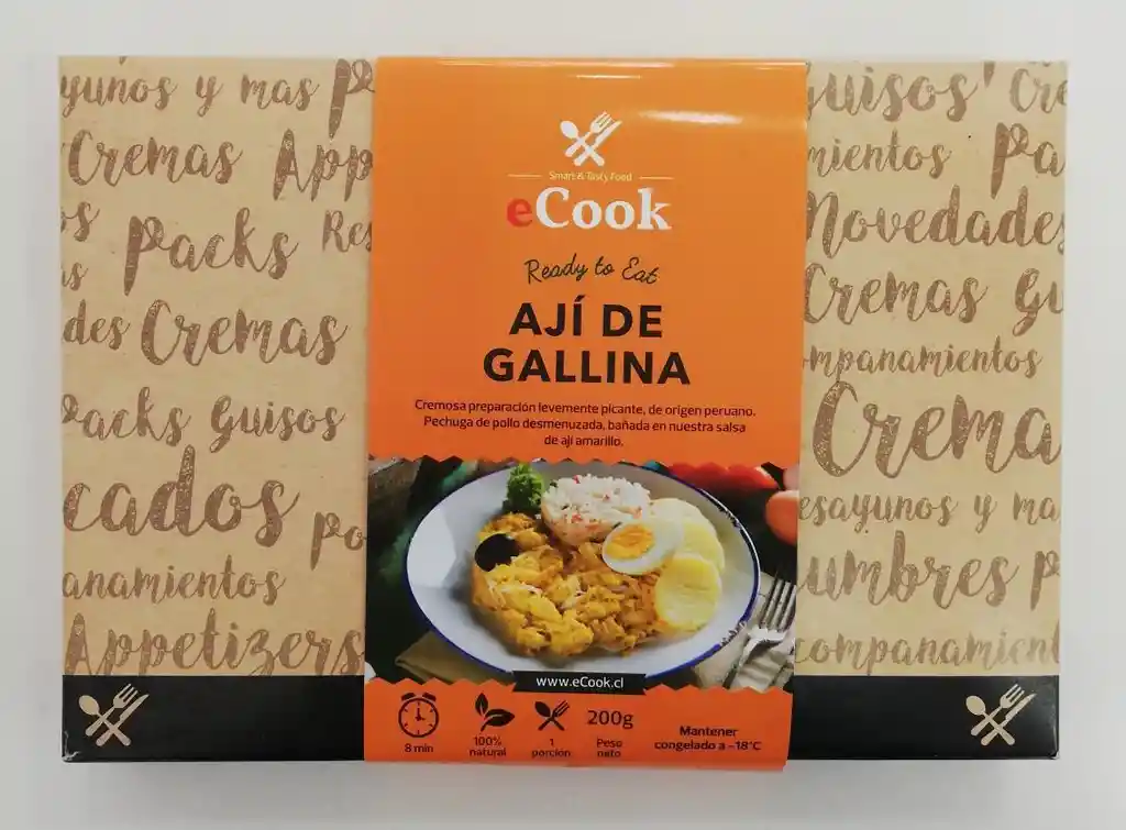 Pechuga de pollo desmenuzada, bañada en salsa de ají amarillo. Bolsa al Vacío. Producto congelado, listo para calentar en la misma bolsa y servir.
