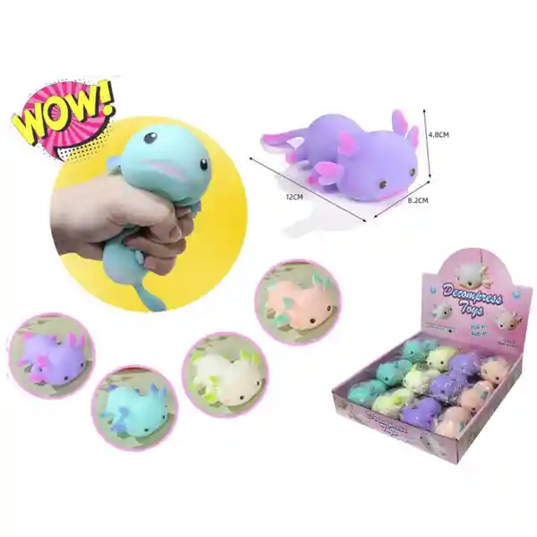 Ajolote de goma suave y flexible en forma de un adorable animalito. Ideal para todas las edades, este juguete es perfecto para reducir el estrés y la ansiedad. Al apretarlo y amasarlo, proporciona una sensación relajante en las manos y los dedos. También puede ser un simpático elemento decorativo para tu escritorio, habitación u oficina. Medidas: 12x8cm
