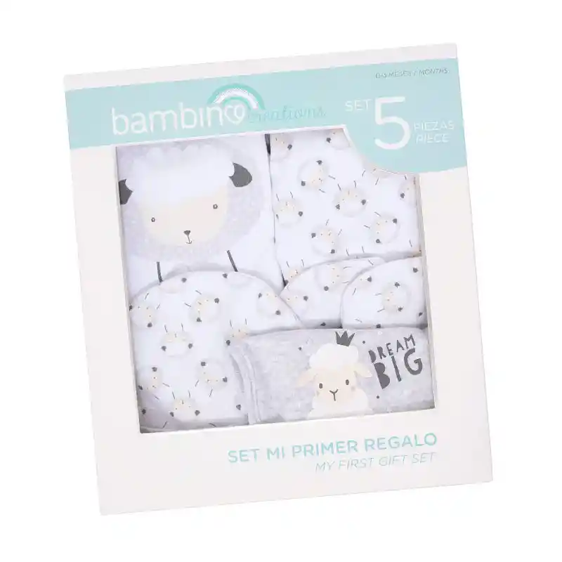 Marca: Bambino Material: Poliéster y Algodón Género: Niño y Niña Color: Gris Talla: 0 a 3 meses Contenido: 1 Body, 1 Panty, 1 Par de mitones, 1 Gorrito y 1 Babero Suave y con lúdicos diseños Ideal para regalar en ocasiones especiales