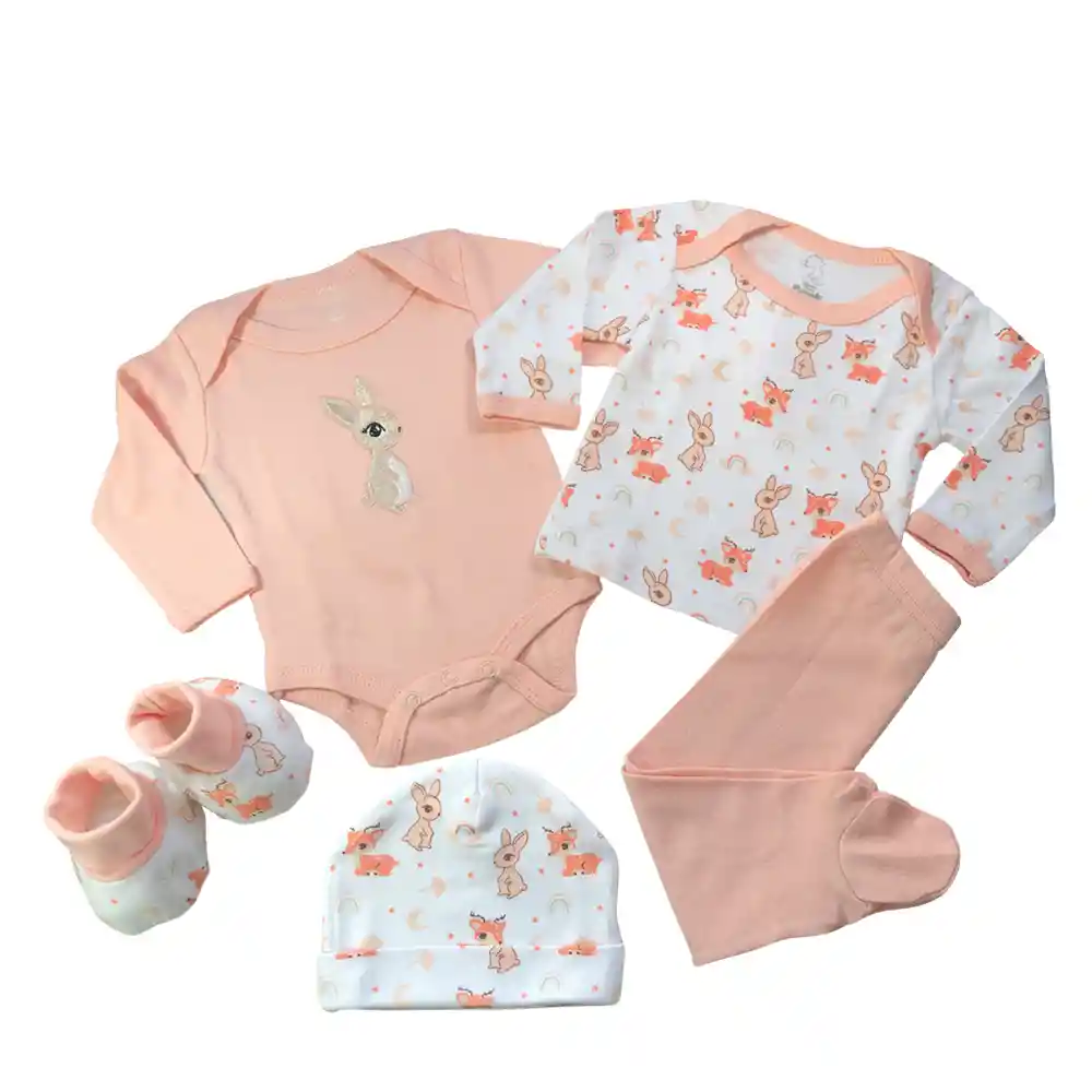 Pumucki trae para tu bebé... Delicado, novedoso y útil ajuar para abrigar al bebe e ideal para regalo baby shower! Contiene: Body bordado, camiseta estampada, botines estampados, gorro estampado y panty lisa. Motivo: Conejo Tela 100% algodón hipoalergénico Puedes ser usado en bebés de 0- 6 meses de edad. Incluye Caja de Regalo Instrucciones de cuidado: -Lavar a maquina con agua tibia -Lavar a maquina en ciclo delicado -Usar blanqueador sin cloro cuando sea necesario -Secar a maquina con temperatura baja -Planchar con plancha fría si es necesario
