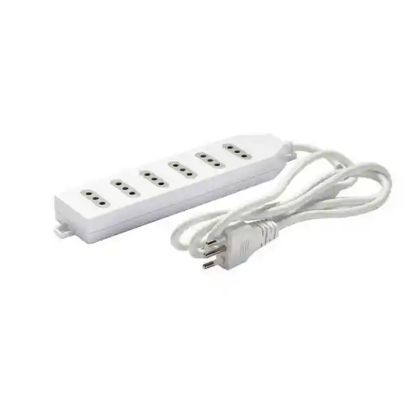 Alargador tipo zapatilla de 1,5mt de largo Con 6 entradas Color Blanco Certificado SEC
