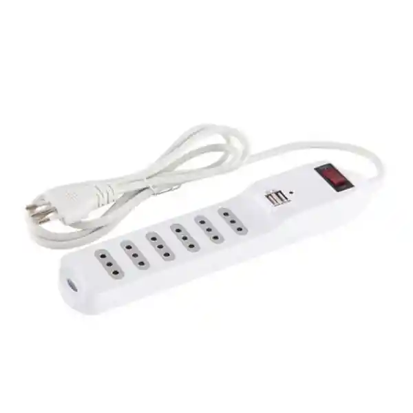 Zapatilla de 1,5mt de largo y 6 posiciones. Además tiene 2 puertos USB de 2,1A para cargar tu celular o el dispositivo que quieras. Con protección para niños y Switch de seguridad contra alzas de voltaje incorporado. Switch de Seguridad Contra Alzas de Voltaje Incorporado Color Blanco Largo 1,5mt #Alargador #USB #Extensión #Zapatilla