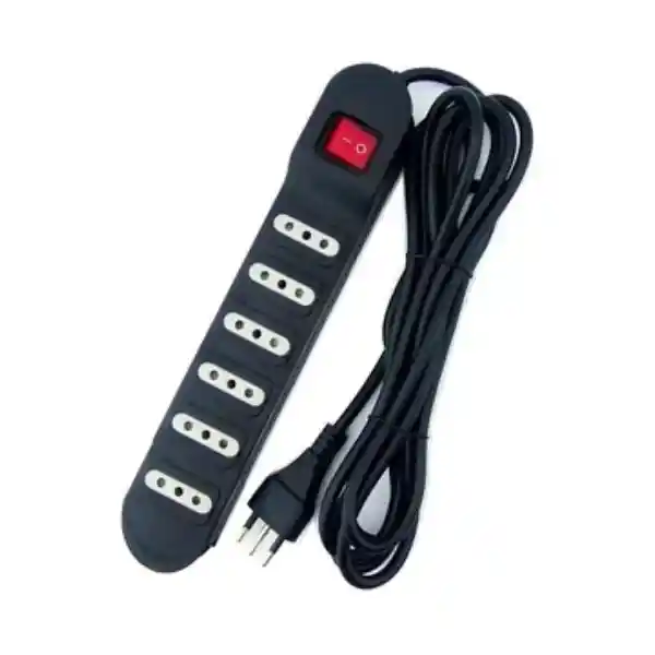 Alargador tipo zapatilla de 3mt de largo Con 6 entradas Con Interruptor Color Negro Certificado SEC con Alveolos de seguridad para niños 10A máx 2500W