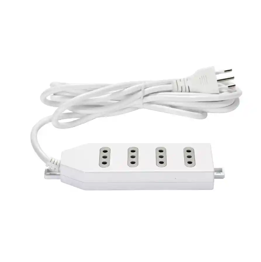 Llega a todas partes con esta extensión eléctrica tipo zapatilla de 4 posiciones. ESPECIFICACIONES: • Alargador de 4 posiciones. • Capacidad para 10A/250V. • Color Blanco. • Certificación SEC. • Resiste 750°C. • Cable de 1,5 metros. • Potencia máxima de 2500W.