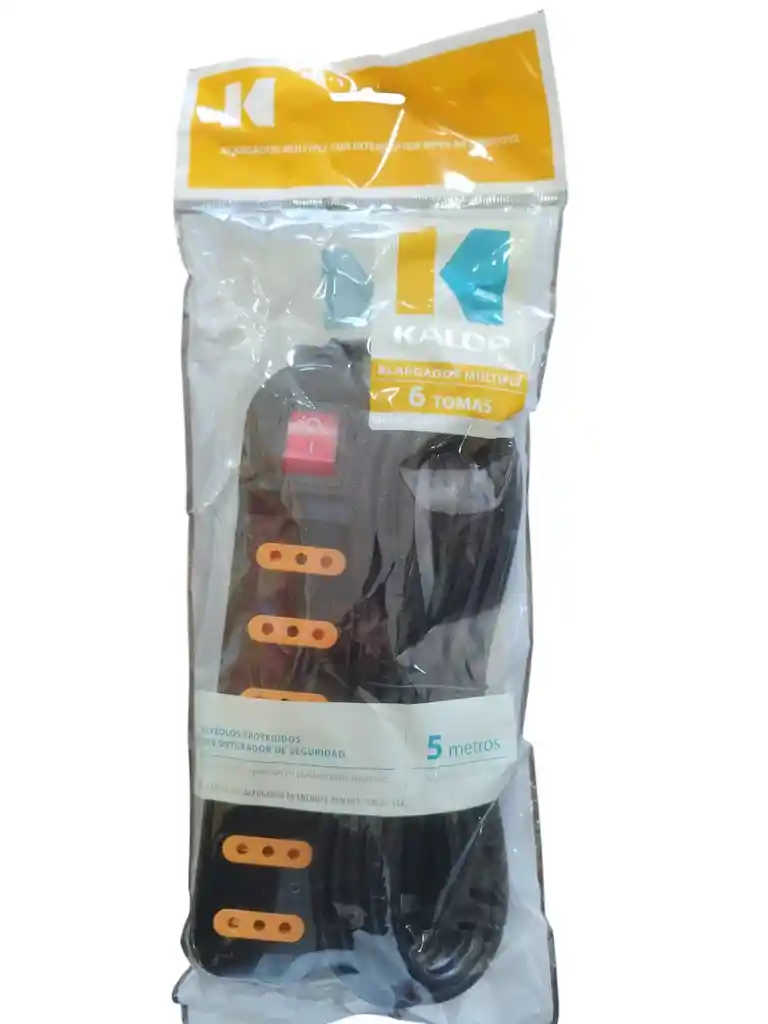 Alargador múltiple con interruptor bipolar luminoso. 6 tomas 5 metros Cordon de 3 x 0.75 mm