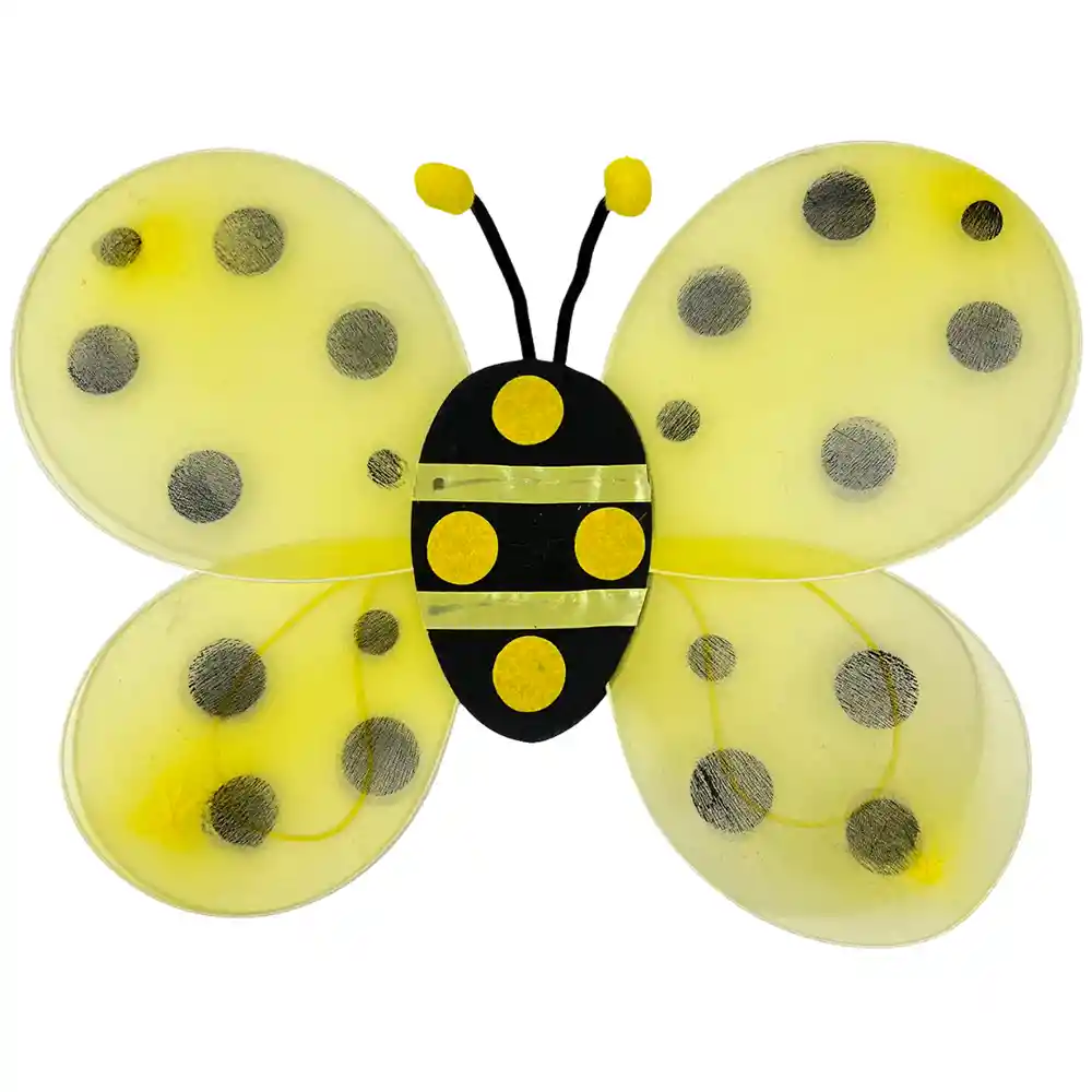 Dale vida a tu look con nuestras Alas de Abeja 46x34 cm, el accesorio perfecto para transformarte en la reina de la colmena o en una tierna abejita. Ligeras y fáciles de usar, son ideales para fiestas de disfraces, Halloween, presentaciones escolares o celebraciones infantiles. Beneficios Diseño alusivo a una abeja, colorido y divertido Tamaño cómodo y ligero para niños y adultos Fáciles de poner y llevar durante horas Perfecto para disfraces de Halloween, shows o actividades escolares Detalles técnicosTamaño: 46 x 34 cmMaterial: Tela y alambre flexibleCantidad: 1 unidadUso: Accesorio para disfraces de abejita ¡Transforma tu look y vuela con alegrÃa en cada fiesta! PÃdelas hoy y recÃbelas en tu hogar