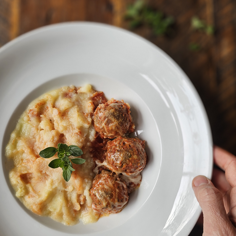 <p>Albondigas atomatadas con puré! hace cuanto no comes? las cocinamos para tí!</p><p>400 gr bruto.</p><p>Solo debes calentar en el microondas 5 min y listo!</p><p>Pincha con el tenedor el film transparente que lo cubre y lo metes tal cual al microondas 5 min y listo! </p><p>Los platos llegarán congelados para que puedas contar con ellos cuando lo necesites y al calentarlos estar'an como recien salidos del horno y 100%naturales.</p><p>Bandejitas especiales para calentar en microondas, no olvides reciclarlas!</p><p> </p>