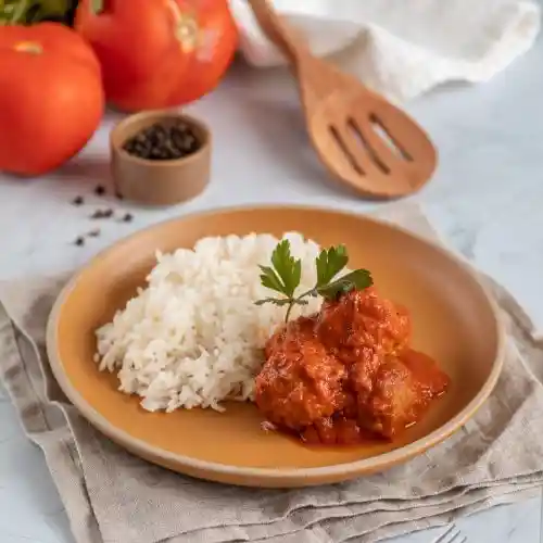 Albóndigas de Vacuno elaboradas artesanalmente con salda Pomodoro natural, acompañadas de arroz Preparación artesanal, sin conservantes ni preservantes ¡Listos el sólo minutos! Para calentar en el Microondas. Conservando todas sus propiedades gracias a nuestra tecnología en envasado.