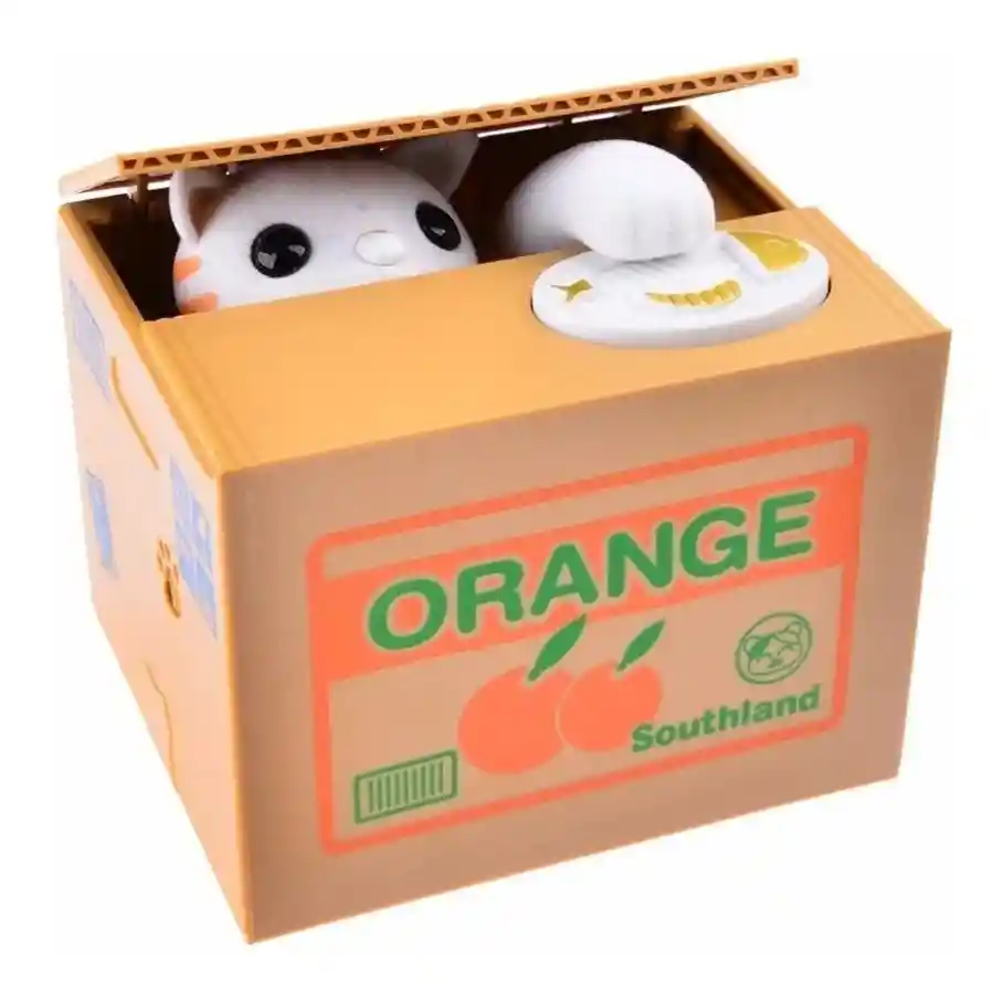 Características técnicas: - Alcancía con diseño de gato que roba monedas. - Adecuada para niños mayores de 6 años. - Funciona colocando una moneda sobre el pescado, el gato robará la moneda. - Requiere 2 pilas AA. Esta alcancía de gato es divertida . Nunca antes juntar dinero había sido tan interactivo y fácil de usar, ideal para los más pequeños de la casa. Hecha con materiales de calidad, esta alcancía asegura gran durabilidad. Al presionar el botón blanco (donde está el pescado), el gato sacará su mano para alcanzar el objeto que dejes sobre la caja y lo llevará al interior. Con este producto podrás incentivar y educar sobre el ahorro. No contiene piezas pequeñas, puedes sacar lo recolectado por el gatito por debajo de la caja.