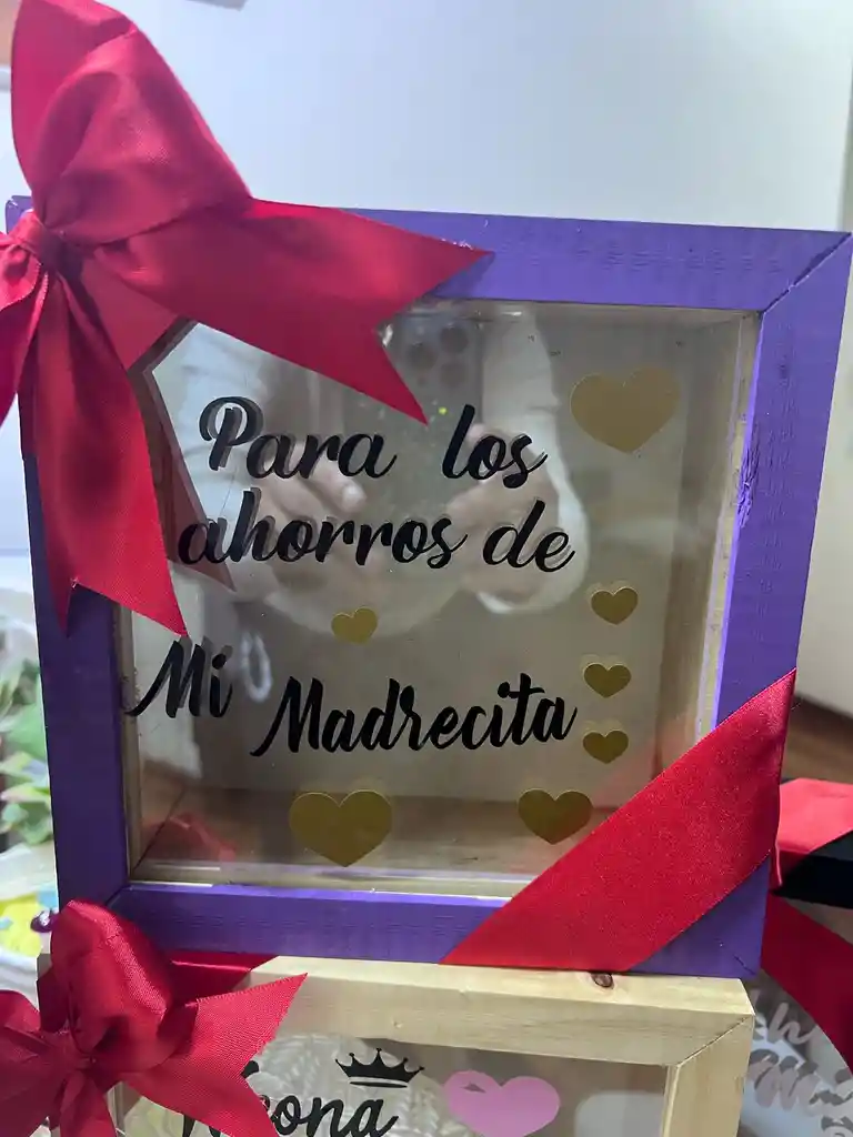 Alcancias de madera letras vinilo Decorada