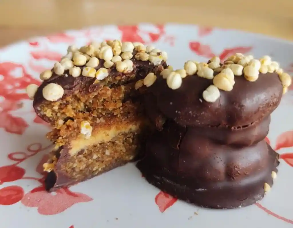 Hecha a base de mix de frutos secos, mantequilla de maní, manjar de plantas, chocolate con azúcar de caña y quínoa.