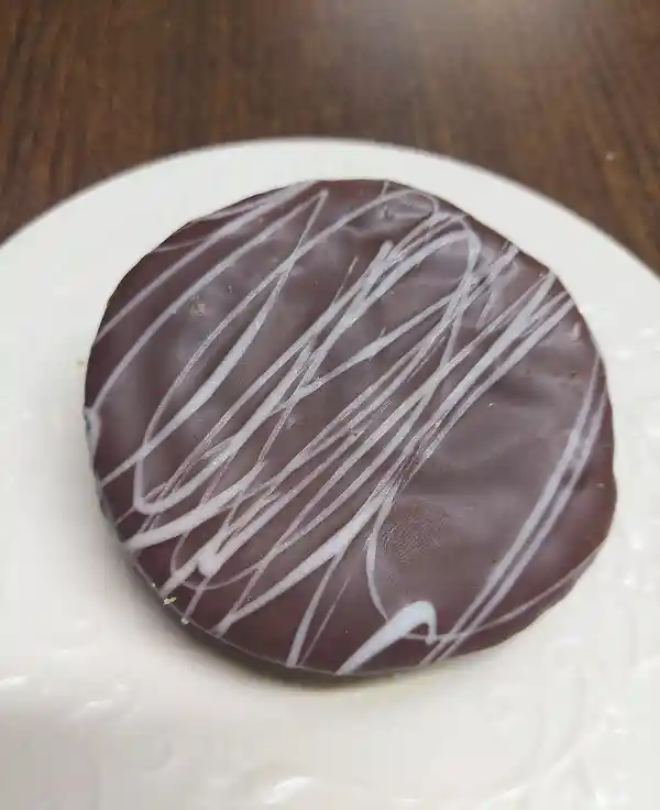 Galleta de chocolate rellena con manjar y bañada en chocolate