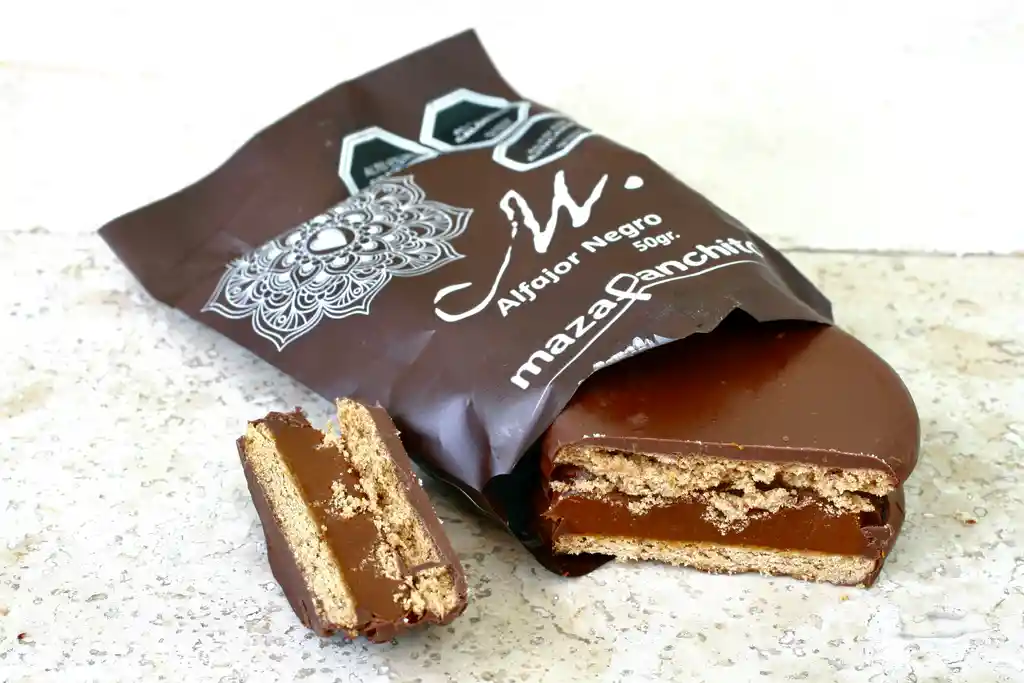 Alfajor de galletas relleno con mucho manjar y bañado en chocolate semi amargo. 50gr.