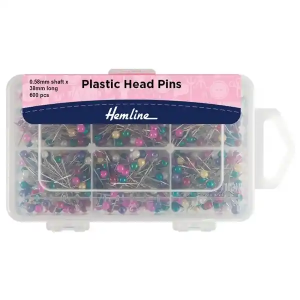 Alfileres largo estándar con cabeza colorida Para uso cotidiano y artesanias Presentación en caja de plastico organizadora 38 mm de largo, 600 unidades