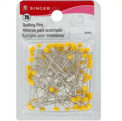 Material acero niquelado súper resistente, ideal para quilting y otros proyectos. Contiene 75 alfileres cabeza amarilla.