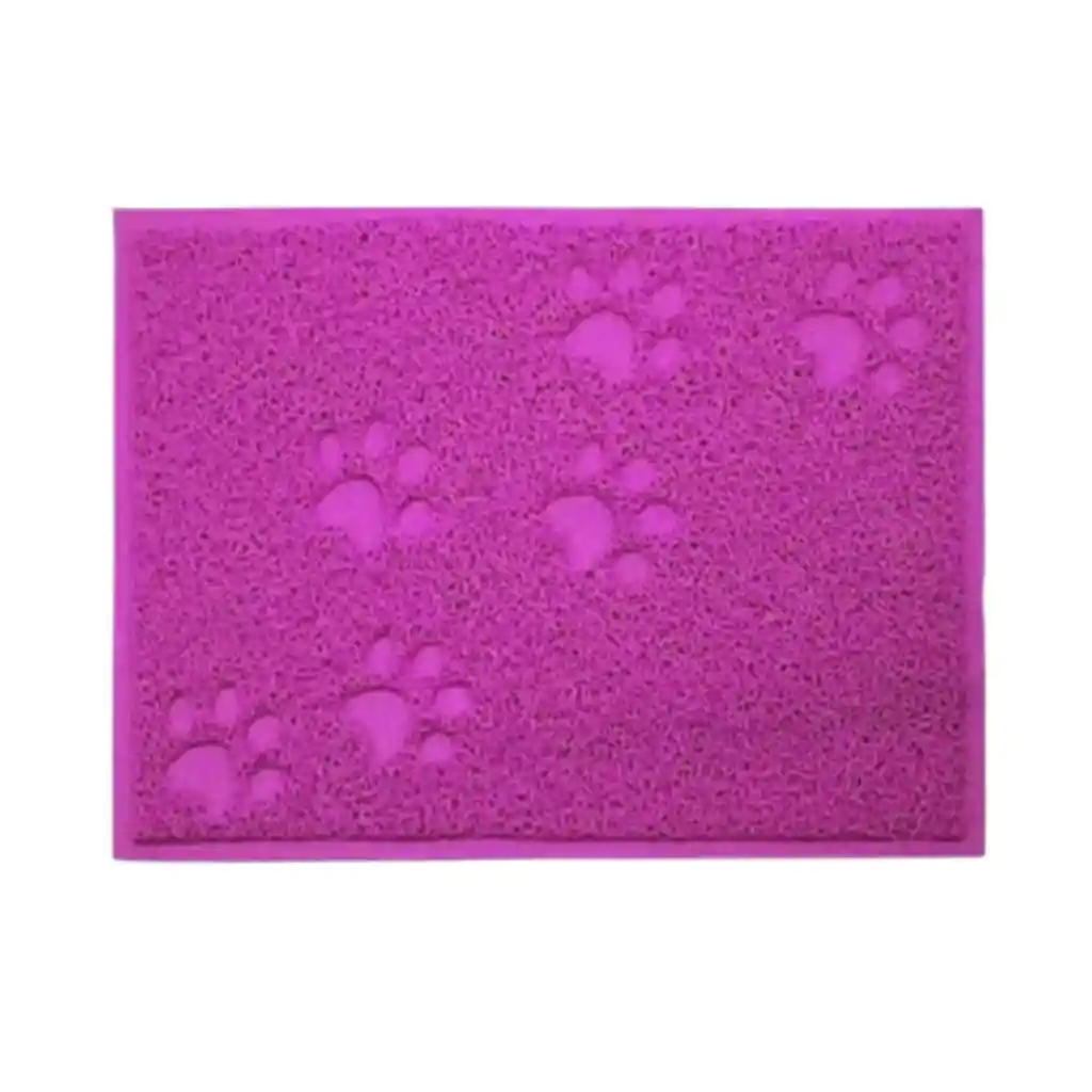 - Puede ser usada en el sector de los areneros, reduciendo el derrame de piedras sanitarias, manteniendo sin suciedad tu piso. - Conserva las garras de tu mascota limpias gracias a que las fibras de la alfombra ayudan a remover la arena de sus patas. - Al ser antideslizante,el evitar que la comida o el agua se derrame de los platos o fuentes de tus mascotas. - Fácil de limpiar, aspirar, lavar o sacudir. - De material suave y flexible. - Dimensiones: 40 x 30 cm - Color: Rosado - Tiene diseños de patitas en su cubierta.