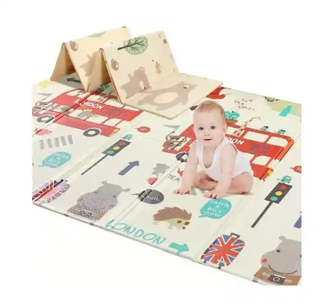 Almohadilla de choque plegable + bolsillos reversibles en ambos lados. 180x200x0,8 cm Patrón aleatorio - Incluye bolsa de transporte - Plegable, la alfombra debe extenderse en su totalidad. * Características. - Interior de gomaespuma XPE de 0,8 mm que absorbe los impactos. - Diseño de impresión brillante e interesante. - La superficie se puede limpiar con un paño húmedo. - Reversible, impreso por ambas caras - Aislamiento de la temperatura del suelo - Superficie impermeable y resistente a los arañazos.