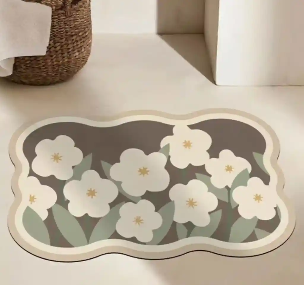 Alfombra De Baño Antideslizante Absorbente Flores Modelo A