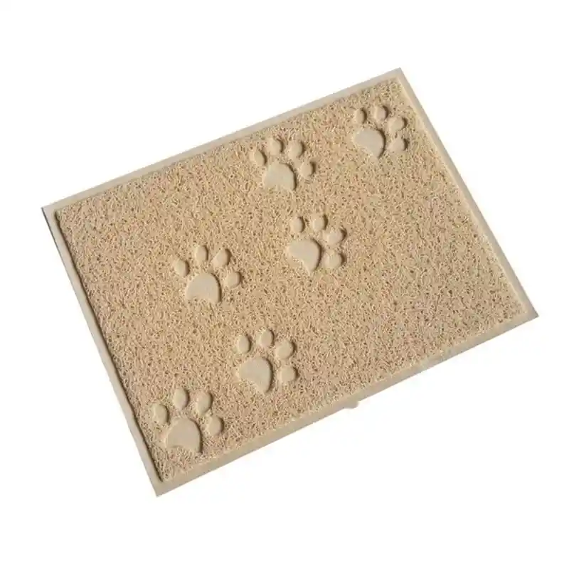 . Elaborador de buen PVC, gran resistencia a la oxidación y al oxígeno. . Suavidad y elasticidad, buen brillo, fácil de limpiar. . Adecuado para comederos, entradas a areneros, jaulas entre otros. Especificaciones: . Material: PVC. . Forma: Rectangular. . Color: Beige . Dimensiones: 40 x 30 cm aprox. . Contenido: 1 Alfombra.