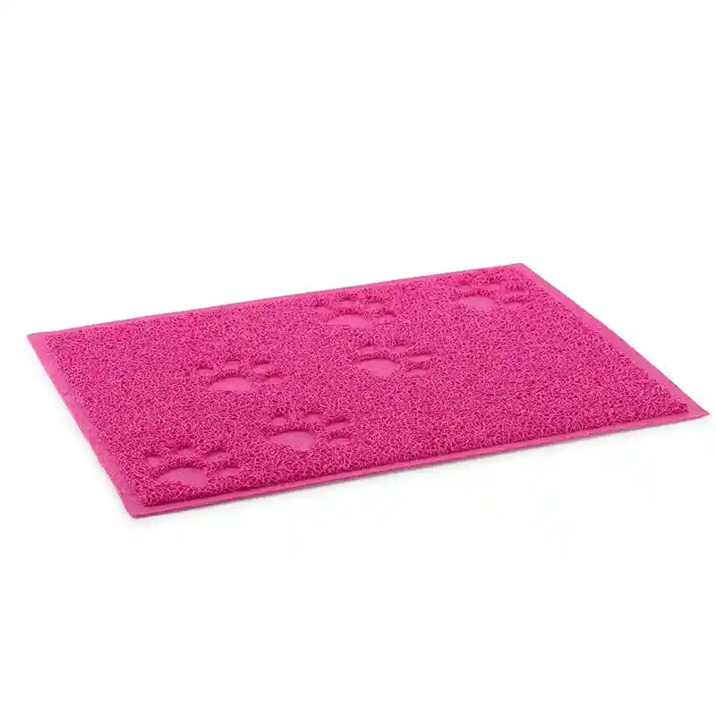 . Elaborador de buen PVC, gran resistencia a la oxidación y al oxígeno. . Suavidad y elasticidad, buen brillo, fácil de limpiar. . Adecuado para comederos, entradas a areneros, jaulas entre otros. Especificaciones: . Material: PVC. . Forma: Rectangular. . Color: Fucsia . Dimensiones: 40 x 30 cm aprox. . Contenido: 1 Alfombra.
