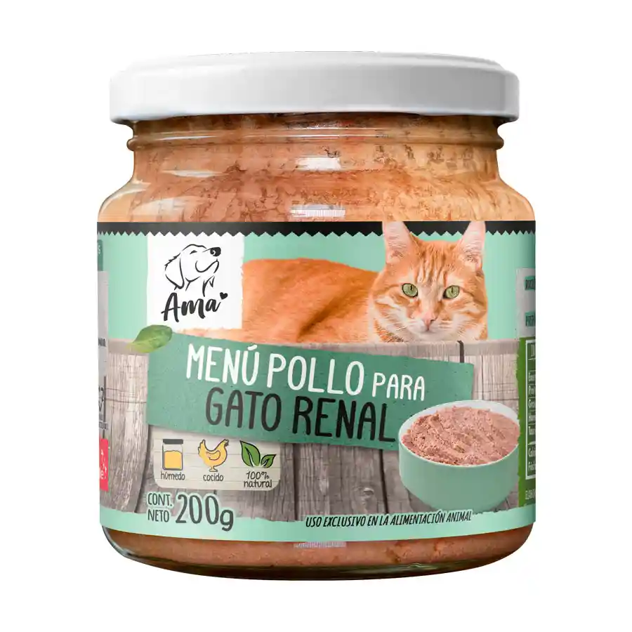 Alimento húmedo, cocido y 100% natural, para gatos con enfermedad renal crónica o en etapas iniciales. Suplementado con alimentos nutracéuticos. Renoprotector para gatos adultos. Alimento de alta digestibilidad y de alto valor biológico. Libre de almidones y granos. Esterilizado, sin preservantes, colorantes ni sal añadida. Ingredientes adquiridos en establecimientos autorizados para el consumo humano. Consulte con su médico veterinario antes de suministrar.