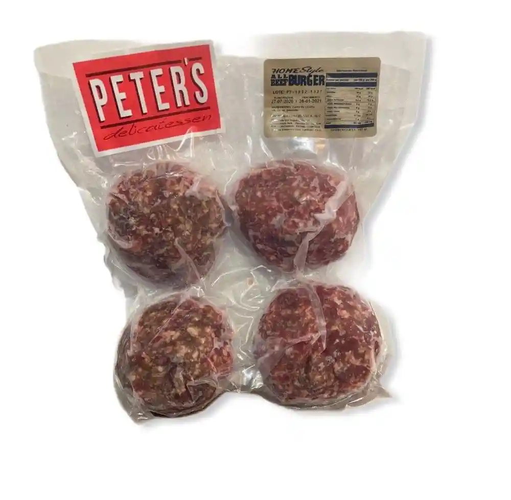 Hamburguesa casera 100% vacuno elaboradas únicamente con cortes de primera categoría y con una condimentación precisa.