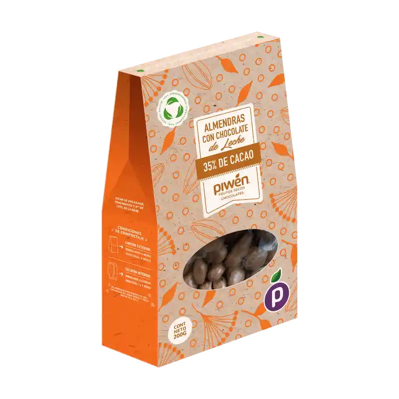 Ingredientes: Cobertura chocolate leche (azúcar, manteca de cacao, pasta de cacao, suero de leche en polvo, leche entera en polvo, lecitina de soya, polirricinoleato de poliglicerol, saborizante idéntico al natural), Almendra, azúcar impalpable, sellante (alcohol etílico, goma laca, aceite vegetal), abrillantador (jarabe de glucosa, agua, goma arábiga, ácido cítrico, sorbato de potasio). Puede contener: Soya, Maní, Leche, Sulfitos, Huevo, otros frutos secos, Sésamo, Mostaza y Lupino.