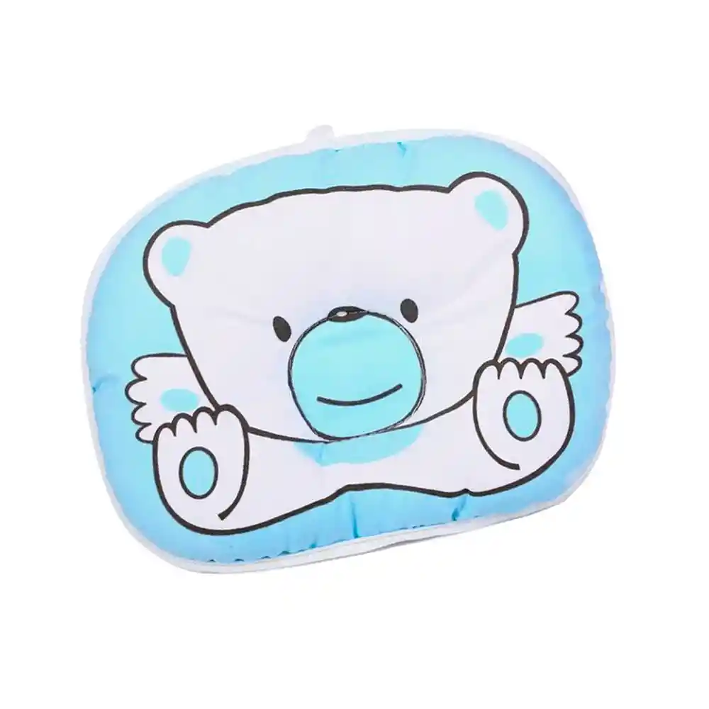 Especificaciones: Material: Algodón Tamaño: 22 cm x 16 cm aprox Diseño: Oso Colores: Celeste (Según Disponibilidad) Contenido: 1 Almohada Características: Ergonómico para la parte posterior de la cabeza Apoya el cuello del bebé y lo mantiene alineado Se puede usar en la cuna, colecho, coche o silla de auto