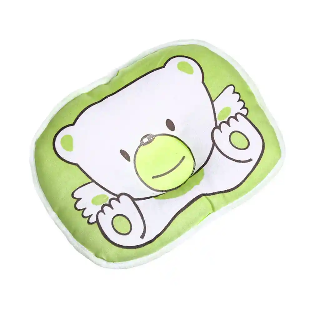 Material: Algodón Tamaño: 22 cm x 16 cm aprox Diseño: Oso Colores: verde Contenido: 1 Almohada Ergonómico para la parte posterior de la cabeza Apoya el cuello del bebé y lo mantiene alineado Se puede usar en la cuna, colecho, coche o silla de auto