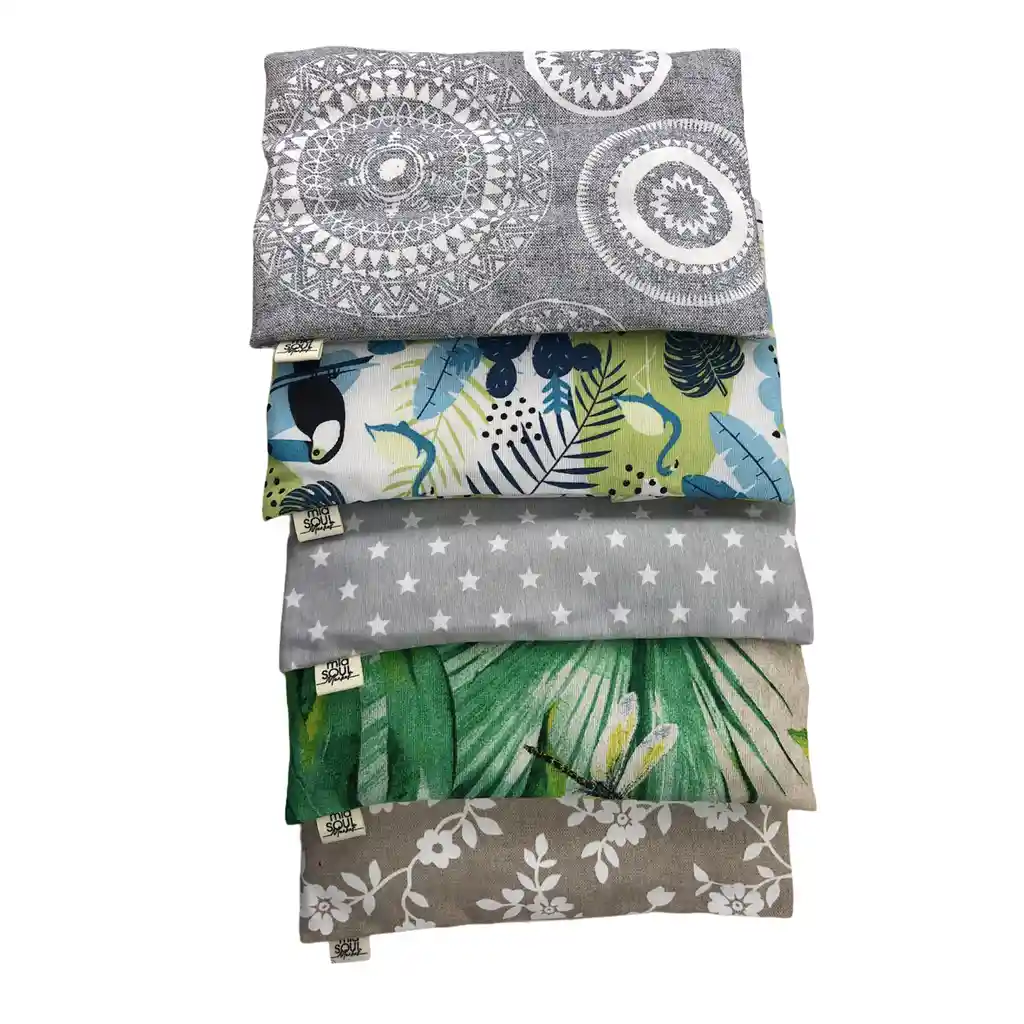 Confeccionadas de lona española, funda desmontable y lavable, relleno con variadas semillas, maravilla, trigo, linaza y lavanda. Peso: 700 grs. aproximado. Medidas: 30 x 19,5 cms. (largo x ancho). * Aptos para calentar en el microondas, sin funda.