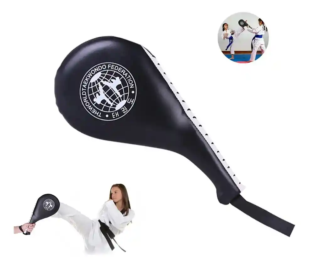 Fuerte resistencia a las patadas, sanda, boxeo, taekwondo patea el objetivo. Diseño y confección razonables, costuras finas y fuertes, la comodidad de uso puede ser dos veces más grande que los objetivos de pie ordinarios, Duradero y repelente al agua mejora en gran medida la durabilidad del objetivo del pie. Al patear, las dos hojas objetivo chocan, emitiendo un sonido fuerte, que estimula el entusiasmo del niño por el ejercicio. El objetivo del pie adopta el diseño de agarre más ergonómico y razonable, que es más cómodo de usar, y el objetivo del pie es adecuado para adultos y niños, y se mejora el grado de seguridad. Placa de acero de alta elasticidad oculta engrosada incorporada, envoltura de cuero suave y engrosada, pegamento de limpieza pegajoso, diseño razonable. Especificación: El objetivo mide 39 cm de largo