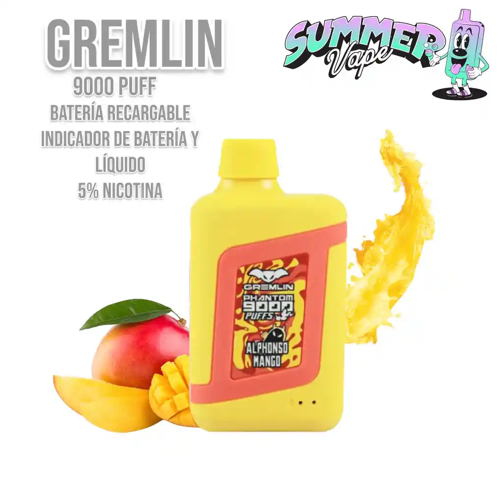 Vaporizador de bolsillo marca PHANTOM GREMLIN de 9000 Puff con Batería recargable