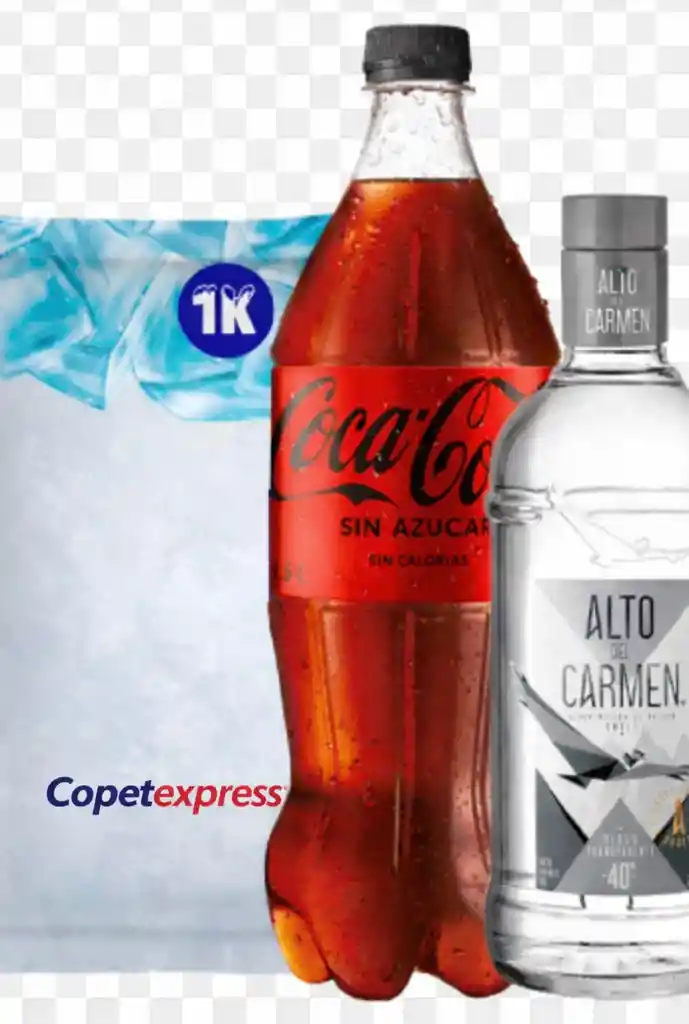 Alto carmen 40° Transparente + Coca Zero 1,5 lt + Hielo 1 kg