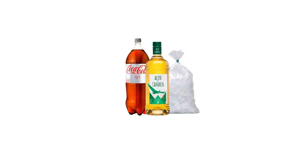ALTO DEL CARMEN 1LT + COCA COLA LIGHT 3 LT + HIELO 2 KG