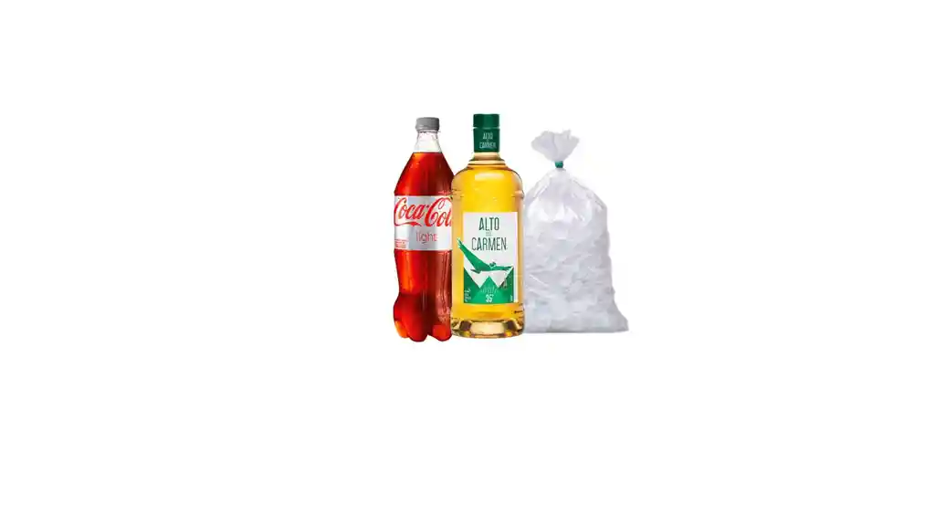 ALTO DEL CARMEN 1LT + COCA COLA LIGHT 1,5LT + HIELO 2 KG