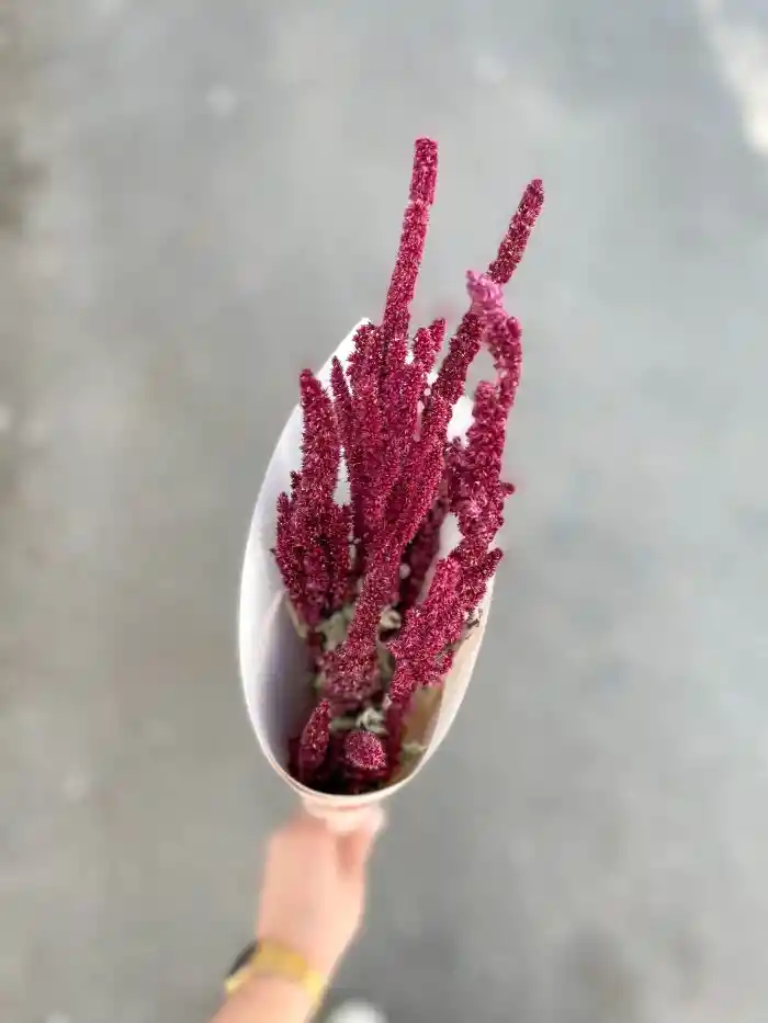 Incluye un de ramo de Amaranto Burdeo seco. Largo aproximado 45 cms. Todos nuestros productos secos y preservados han sido cuidadosamente seleccionados e importados desde Holanda para ti. Además todos han sido cultivados, cosechados y producidos de manera manual para garantizar la mejor calidad y color, respetando las normativas eco-sustentables europeas. Nuestros productos pueden durar varios años si se cuidan de la manera correcta evitando el sol directo, cambios de temperaturas muy abruptos, exposición a espacios húmedos, contacto directo con el agua, inadecuada manipulación, entre otros.