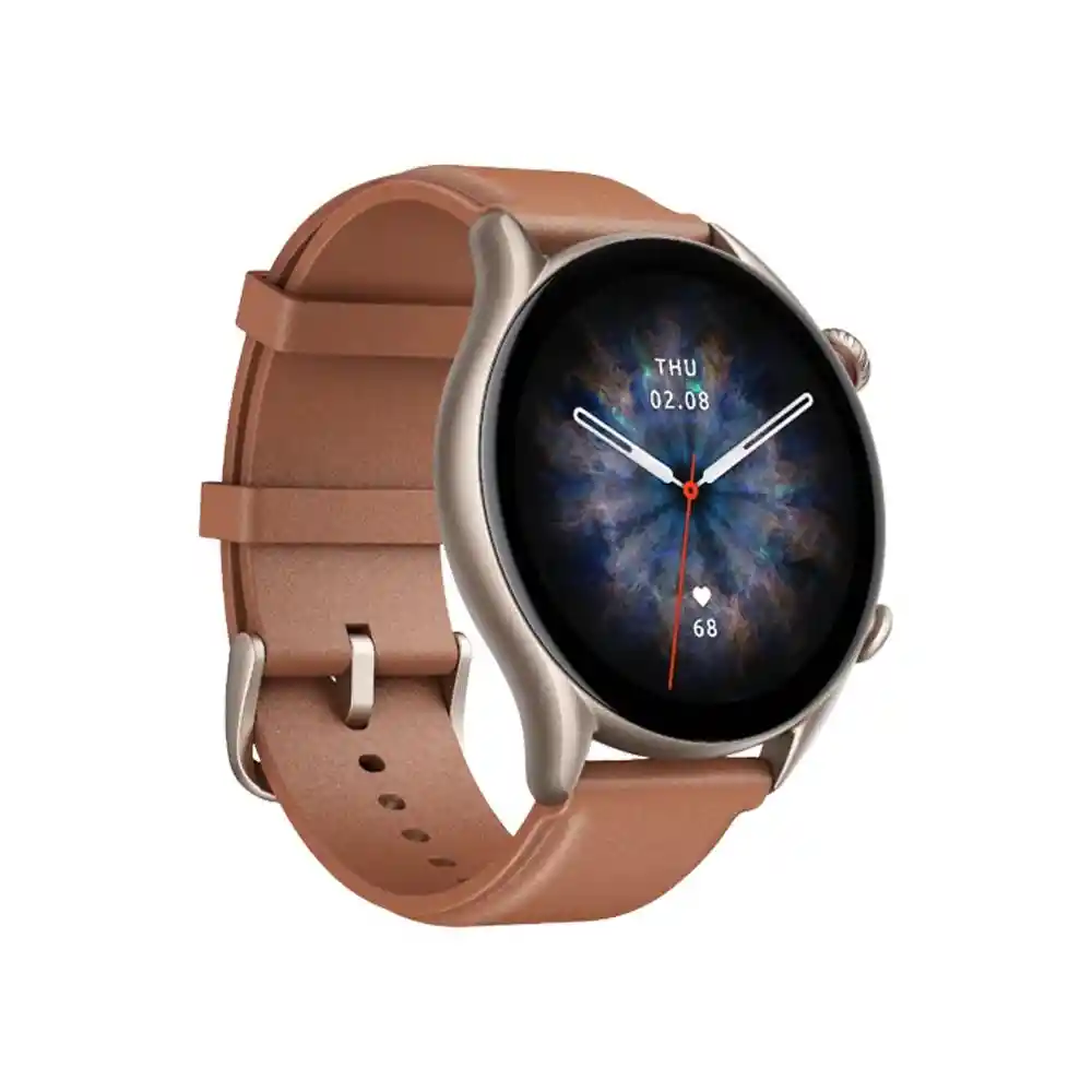 "Amazfit GTR 3 Pro Marrón con correa de cuero, almacenamiento y reproducción local de música y altavoz y micrófono para llamadas Bluetooth Pantalla UHD AMOLED – Diseño redondo de 1.45"" – Resolución 480 x 480p – Monitorización de salud 24/7 – APP Zepp – Botón lateral de navegación – Hasta 12 días de uso típico diario – Realización de llamadas Bluetooth – Asistente de voz – Reproducción nativa de música – Más de 150 modos deportivos – Resistente al agua 5 ATM Para que un producto se erija como un buen wearable inteligente, es importante que luzcas bien con él, además de ofrecer un rendimiento implacable, ya que será un complemento más de tu outfit. Pues bien, el nuevo Amazfit GTR 3 Pro cumple esto a rajatabla. GTR 3 Pro Marrón con correa de cuero de 22mm Inspirado en los relojes clásicos, el súper elegante Amazfit GTR 3 Pro presenta un cuerpo con formato redondo, fabricado mediante una aleación de aluminio de grado aeronáutico, ligera pero resistente, con una refinada corona giratoria. El diseño sin bisel se funde a la perfección con el cristal 2.5D curvo de la pantalla, realzando una estética premium y la inmersión visual. La edición Brown Leather viene acompañada de una distinguida correa de cuero marrón, aunque podrás sustituirla fácilmente por una correa universal de 22 mm para adaptar tu GTR 3 Pro a diferentes situaciones sociales. Gestión de batería optimizada para 12 días de uso sin interrupciones Para empezar es importante que sepas que tu reloj GTR 3 Pro siempre estará preparado para acompañarte en tus viajes y seguir tu progreso, ya que garantiza un sistema de gestión de la batería profundamente optimizado. De hecho, con una sola carga, la batería de 450 mAh del Amazfit GTR 3 Pro es capaz de proporcionar una autonomía de hasta 12 días* bajo un uso típico diario, hasta 6 días* con uso intensivo, hasta 35 horas* con GPS activado y hasta 30 días* en Modo Ahorro. *Los datos relacionados con la batería y la carga se obtuvieron de laboratorios internos. Los resultados reales pueden variar según las diferencias en la versión del software, el entorno y las condiciones de uso, y pueden no reflejar el producto real. Altavoz + micrófono para realizar llamadas Bluetooth ¿Estás recibiendo una llamada importante a mitad de entrenamiento? Pues ya no será necesario que vayas corriendo a buscar tu teléfono móvil. El watch GTR 3 Pro integra un altavoz y un micrófono para que puedas realizar o responder llamadas Bluetoot sin más. ¡Cómodo y fácil como nunca antes! 2.3GB para almacenamiento de música Por otro lado, el Amazfit GTR 3 Pro cuenta con 2.3GB de espacio para el almacenamiento de música, cantidad más que suficiente para transferir unas 470 canciones. De esta forma podrás reproducir tu música de manera local e independiente, sin tener que portar el teléfono móvil. Nuevo sistema operativo Zepp OS con asistente de voz He aquí otro gran protagonista del Amazfit GTR 3 Pro: el nuevo sistema operativo Zepp OS, que da forma a un magnífico y renovado esquema de color, ocupa menos espacio e introduce un ecosistema de aplicaciones enriquecido, con interacciones más fluidas y accesos rápidos a tus funciones favoritas. Además, ofrece varios modos de interactuar con tu reloj, como la corona giratoria y el botón lateral o el Asistente de voz Amazon Alexa. Pídele ayuda de manera offline para establecer alarmas, iniciar un modo deportivo o abrir una aplicación; y online para, además de todo eso, pedir información sobre el tiempo, controlar tus dispositivos del hogar inteligente, crear listas de la compra, realizar preguntas, obtener traducciones… y mucho, mucho más. Métricas más precisas con el nuevo sensor óptico BioTracker 3.0 Con el mejorado sensor biométrico BioTracker 3.0 PPG, que incluye 6 fotodiodos frente a los 2 de la generación anterior, el Amazfit GTR 3 Pro realiza múltiples métricas de salud súper precisas de manera ultra-eficiente, como la monitorización dinámica de la frecuencia cardíaca o la saturación de oxígeno en sangre, así como el sistema de evaluación de la salud PAI (Personal Activity Intelligence)*, que recoge todos esos datos y los transforma en un único valor numérico para que entiendas mejor tu estado de salud general. *Destinado únicamente a fines de bienestar general y de forma física. No está previsto su uso para la detección, el diagnóstico o el tratamiento de ninguna afección médica o enfermedad. Las medidas son solo para referencia personal. Consulta con un profesional médico para obtener asesoramiento. Gestiona tu nivel de estrés con alertas y ejercicios de respiración Además de datos más precisos, el nuevo sensor BioTracker 3.0 PPG del GTR 3 Pro introduce una nueva y útil función de salud: la detección de la frecuencia respiratoria, que podrás tomar fácilmente en 1 solo toque. También mejora la monitorización del nivel de estrés, que ahora se lleva a cabo de manera automática y te alerta cuando dicho nivel sea demasiado elevado. Así, si necesitas relajarte, puedes recurrir a los nuevos ejercicios de respiración incluidos. Monitorización del sueño, nivel SpO2 y calidad respiratoria mientras duermes Muy importante resulta también el monitor de sueño, que detecta y analiza de forma integral las fases del sueño mientras descansas. Por si fuera poco, las opciones de medición mejoradas te permiten comprobar tus niveles de oxígeno en sangre y la calidad de la respiración mientras duermes, ofreciéndote recomendaciones para ayudarte a mejorar la calidad y la duración del descanso. Más de 150 modos deportivos con análisis profesional de los datos Viste tu chándal más llamativo, tu reloj inteligente y sal a practicar el deporte que más te guste. El Amazfit GTR 3 Pro registra tus actividades y resultados fitness, cuenta los pasos, comprueba las calorías, reproduce rutas exactas con el GPS... En resumidas cuentas, el nuevo GTR 3 Pr
