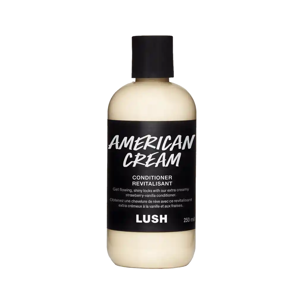 El acondicionador American Cream suaviza y realza el brillo de tu pelo gracias a sus ingredientes naturales como las frutillas, naranja y vainilla.