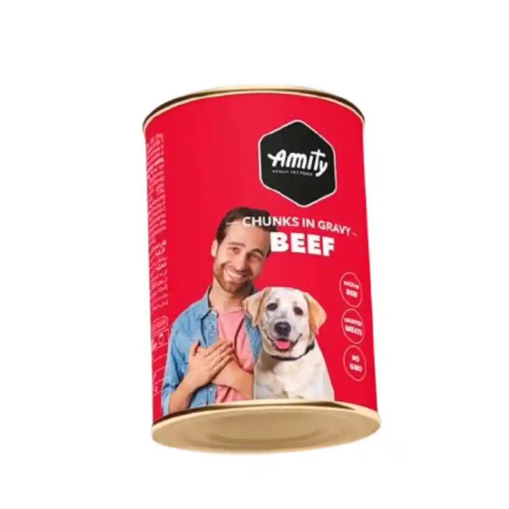 Amity Chunks Dog Beef es un alimento húmedo completo y equilibrado para perros adultos, elaborado con sabrosos trozos de carne de vacuno cocidos a fuego lento. Su textura jugosa y su receta altamente palatable lo convierten en una excelente opción para complementar o sustituir la alimentación seca diaria. Alto contenido en humedad, ideal para mejorar la hidratación diaria. Fácil digestión, gracias a una receta cuidadosamente formulada. Enriquecido con vitaminas y minerales para el bienestar general, piel sana y pelaje brillante. Beneficios: Carne de vacuno como fuente principal de proteína, para mantener músculos fuertes y sanos. Alto contenido en humedad, ideal para mejorar la hidratación diaria. Textura tierna en salsa, irresistible Fácil digestión, gracias a una receta cuidadosamente formulada. Enriquecido con vitaminas y minerales para el bienestar general, piel sana y pelaje brillante. Ingredientes: Carnes y derivados animales (ternera 12%, hígado 4%), cereales, huevos y ovoproductos, vitaminas y minerales.