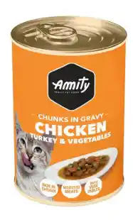AMITY CHUNKS CHICKEN, TURKEY & VEG ADULT CAT WET FOOD 415 GR