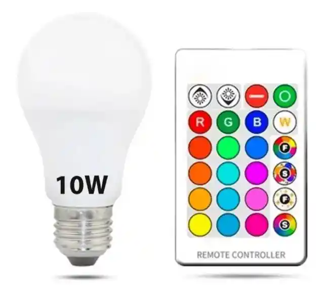 SOMOS MIKI IMPORTS Esta ampolleta LED es ideal para todo tipo de ambientes ya que se conecta a 220 volt de tu hogar en soquete E-27 como el de las ampolletas normales, es ideal para fiestas, dormitorios, living, locales comerciales etc. Así iras cambiando la iluminación o color del ambiente o lugar, es fácil de utilizar ya que se controla de manera inalámbrica por medio de un control remoto incluido con un alcance de 5 metros y dispone de varios tonos de colores diferentes y efectos lumínicos como cambio de color automático y aumento y disminución de intensidad de luz con modo FLASH/STROBO/FADE/SMOOTH. El pack incluye una ampolleta LED RGB más su control remoto con pila CR2025. La ampolleta es de mica plástica con base de metal de gran calidad, la ampolleta mide 7cm de ancho por 12,5cm de alto.