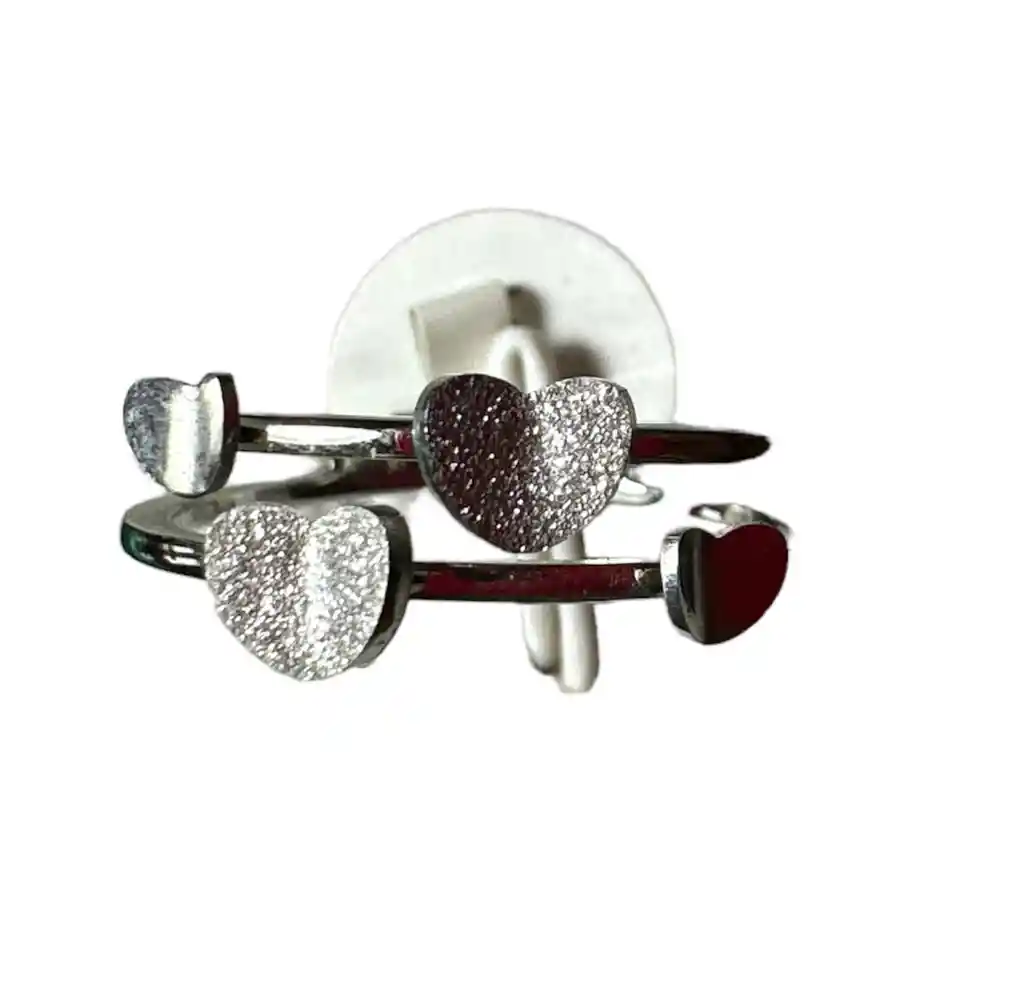 Anillo de acero con efecto 3D y argolla doble que se une en la parte inferior, para mayor comodidad. Estructura plateada y diseño atemporal . Única Talla 9 Tabla disponible en la ultima foto.