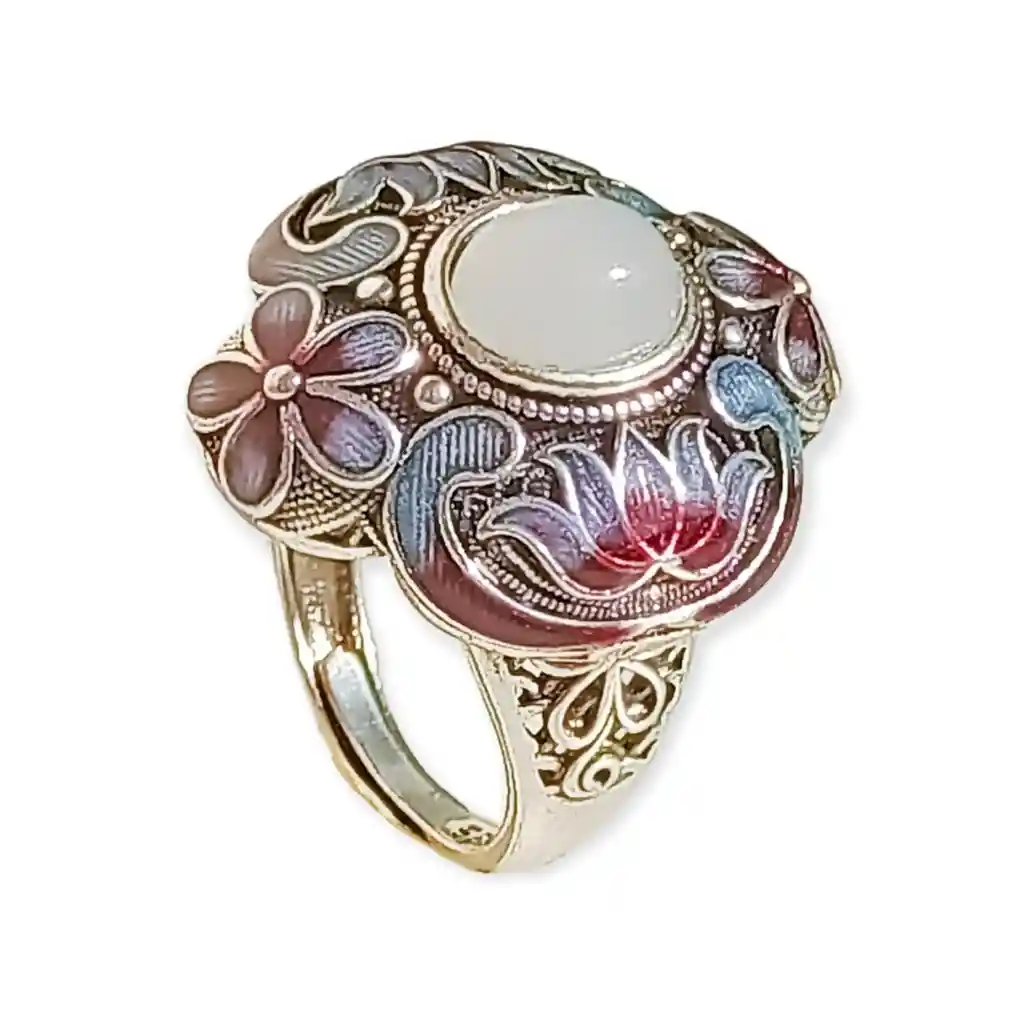 Hermosísimo anillo enchapado en plata 925 con una hermosa calcedonia como piedra central del diseño. Único y especial, se convierte en el regalo super ideal para ti ó para esa persona que precisamente tienes en mente. El anillo se envia para ser usado partiendo desde una talla 17CL (8 US). Pero se puede ajustar entre las tallas 14 CL (7 US) hasta la 22 CL (10 US). Es importante que sepas que todos nuestros productos se envían en cajitas de regalo para acompañarte en ese momento especial. Metal: Chapado en plata 925 Piedra: Calcedonia Peso aprox: 2 g
