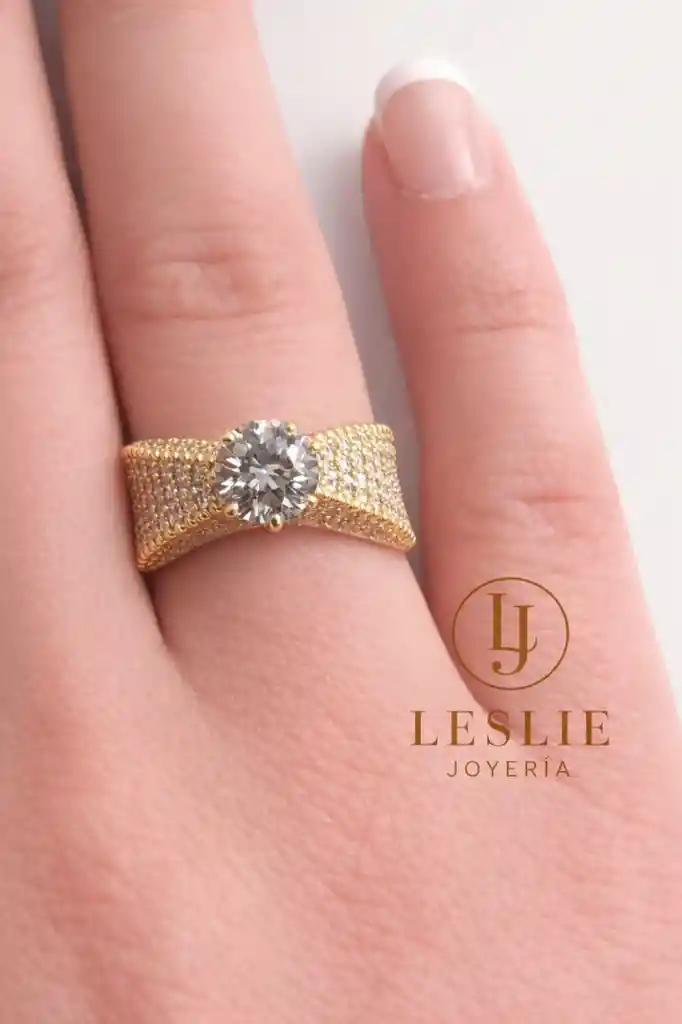 Anillo con cristal y micro circones laminado en oro de 18k talla 9.