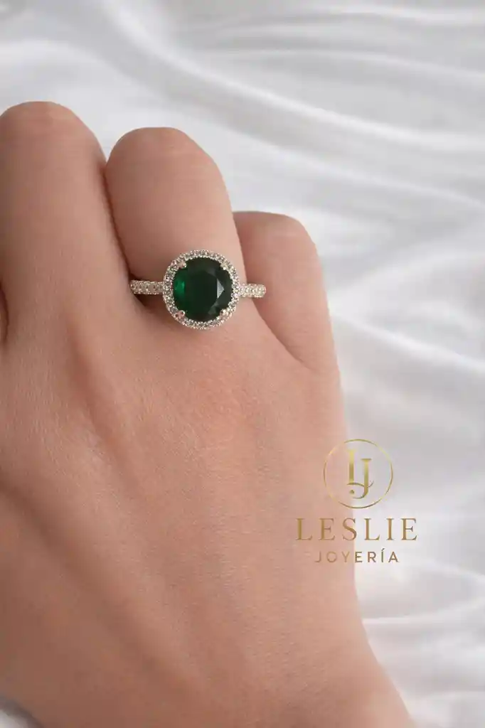 Anillo con cristal verde y micro circones laminado en oro de 14k talla 9.