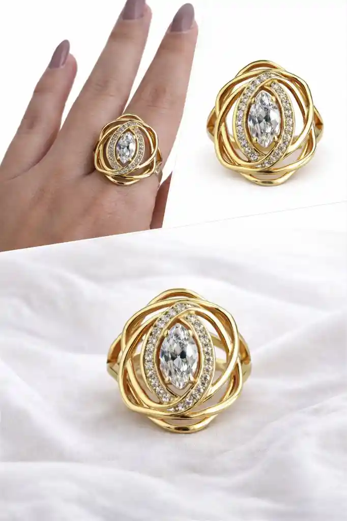 Anillo combinado con micro circones y cristales hermoso diseño laminado en oro 14k talla 11.