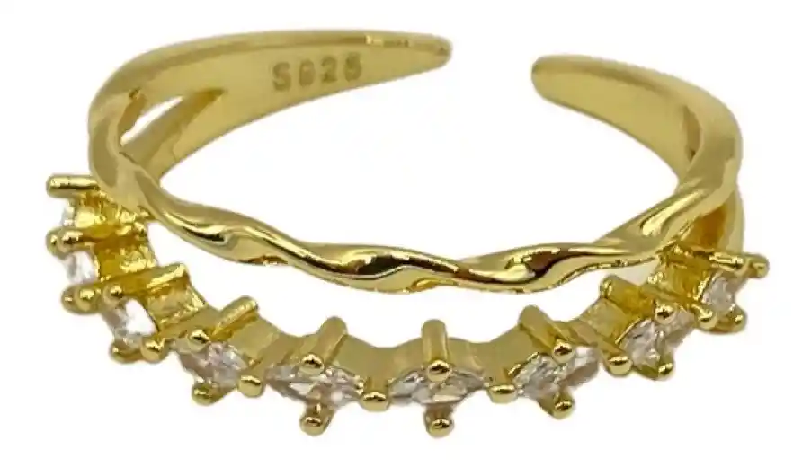 Anillo Corona Ajustable Plata S925 Baño Oro + Estuche